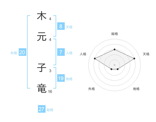 木元 子竜さんの天格は8画の4点!