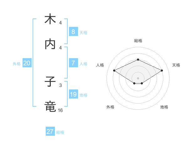 木内 子竜さんの総格は27画の3点!