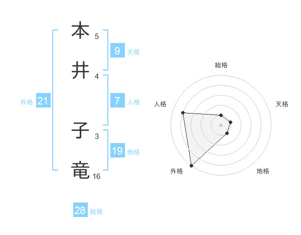 本井 子竜さんの外格は21画の5点!