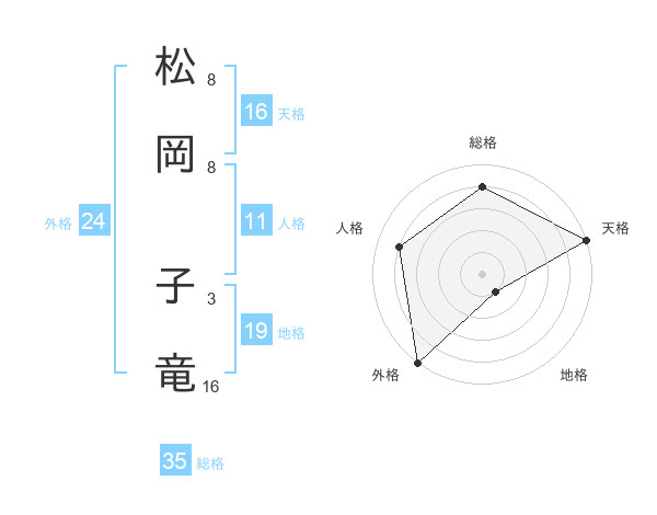 松岡 子竜さんの外格は24画の5点!