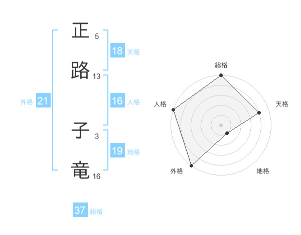 正路 子竜さんの総格は37画の5点!