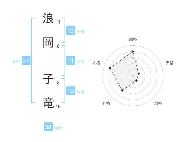 浪岡 子竜さんの総格は38画の4点!