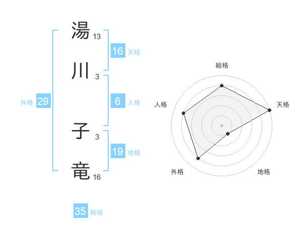 湯川 子竜さんの天格は16画の5点!