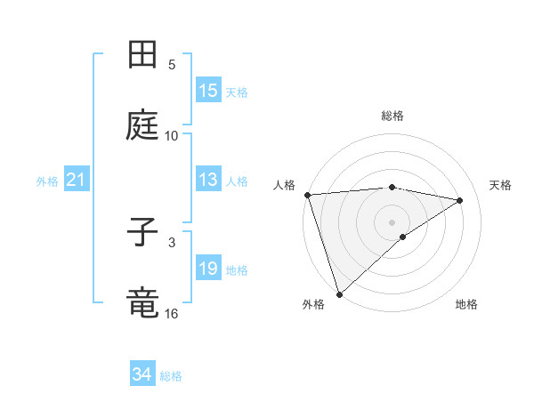 田庭 子竜さんの外格は21画の5点!