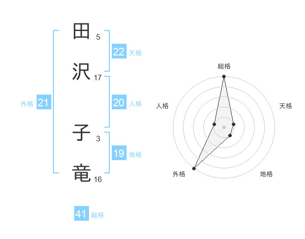 田沢 子竜さんの外格は21画の5点!
