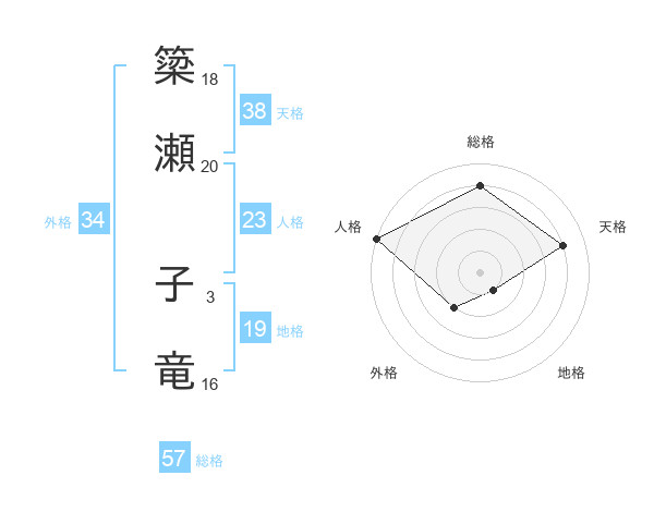 簗瀬 子竜さんの天格は38画の4点!