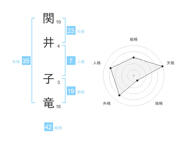 関井 子竜さんの天格は23画の5点!