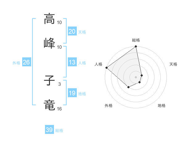 高峰 子竜さんの総格は39画の5点!