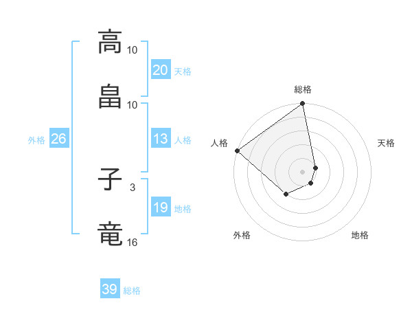 高畠 子竜さんの総格は39画の5点!