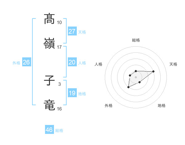 髙嶺 子竜さんを姓名の画数から五運を鑑定