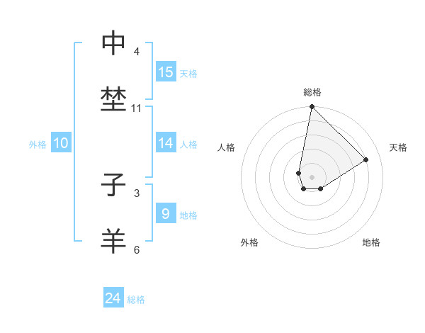 中埜 子羊さんの天格は15画の4点!