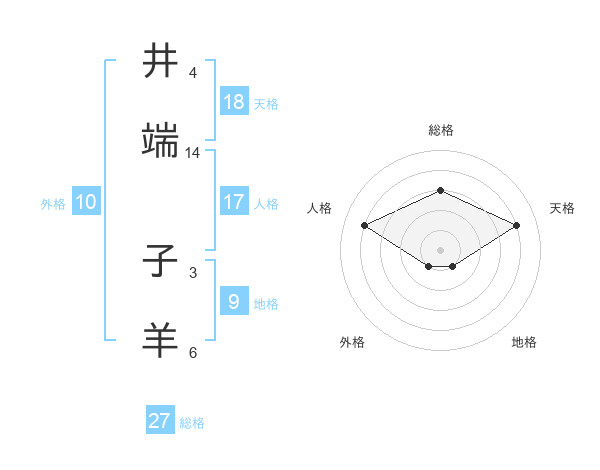 井端 子羊さんの天格は18画の4点!