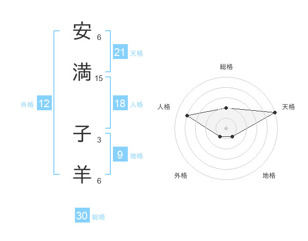 安満 子羊さんの総格は30画の2点!