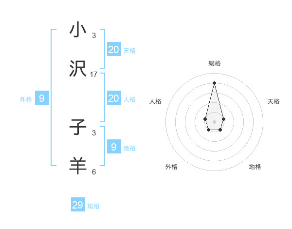 小沢 子羊さんを姓名の画数から五運を鑑定