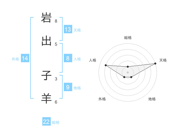 岩出 子羊さんの総格は22画の1点!