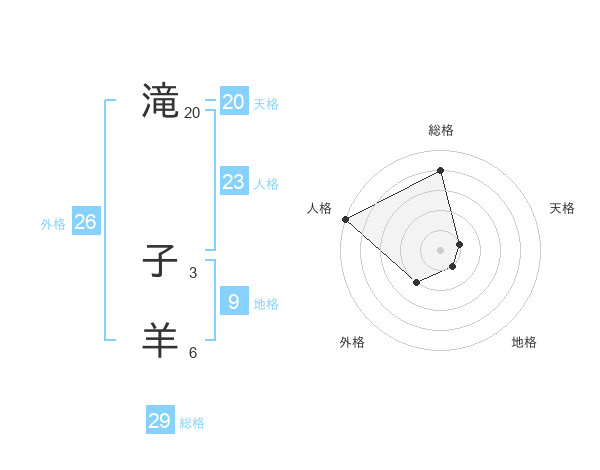 滝 子羊さんの総格は29画の4点!
