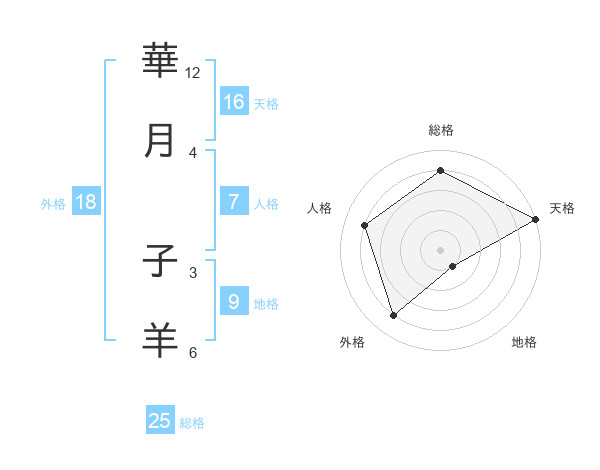 華月 子羊さんの総格は25画の4点!