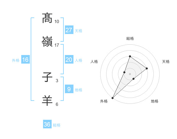 髙嶺 子羊さんの総格は36画の3点!