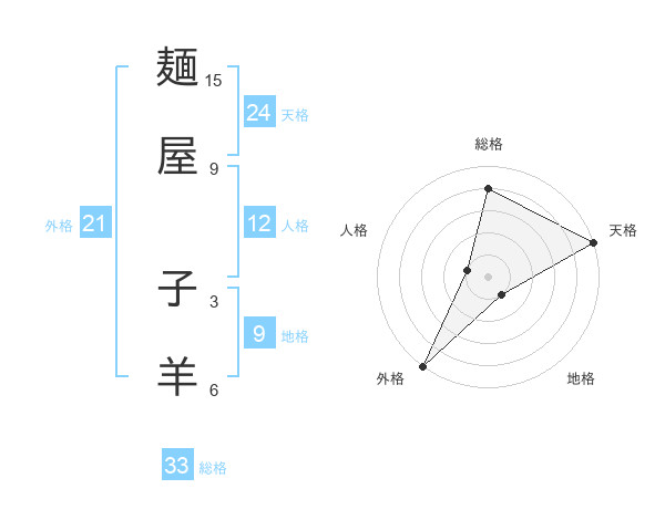 麺屋 子羊さんを姓名の画数から五運を鑑定