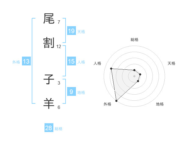 尾割 子羊さんを姓名の画数から五運を鑑定