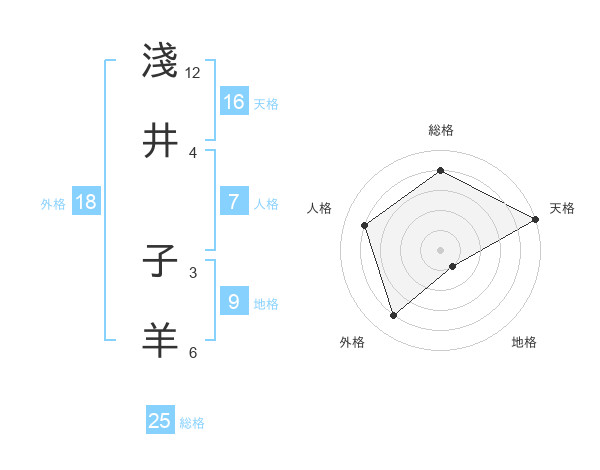 淺井 子羊さんの天格は16画の5点!