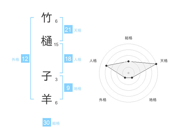 竹樋 子羊さんを姓名の画数から五運を鑑定