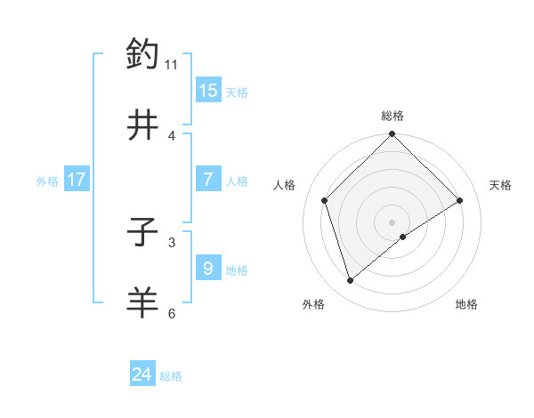釣井 子羊さんの天格は15画の4点!