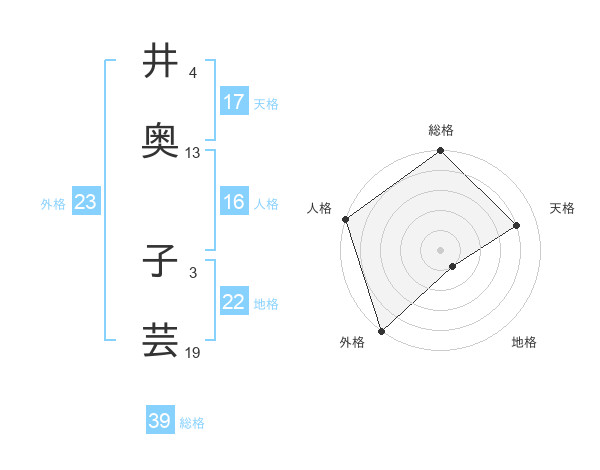 井奥 子芸さんを姓名の画数から五運を鑑定