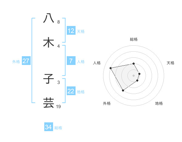 八木 子芸さんの総格は34画の2点!