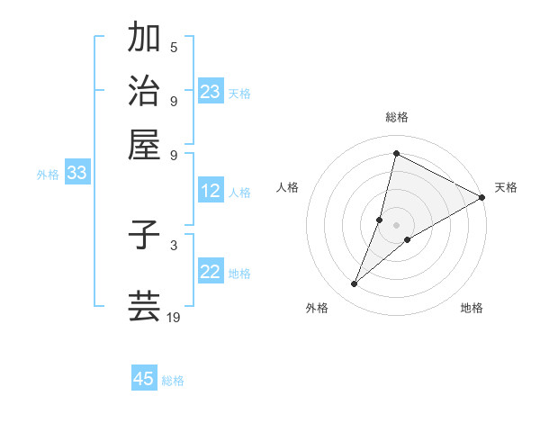 加治屋 子芸さんを姓名の画数から五運を鑑定