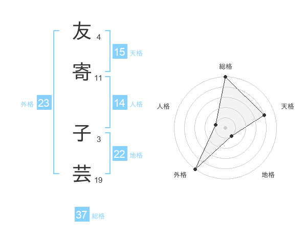 友寄 子芸さんを姓名の画数から五運を鑑定