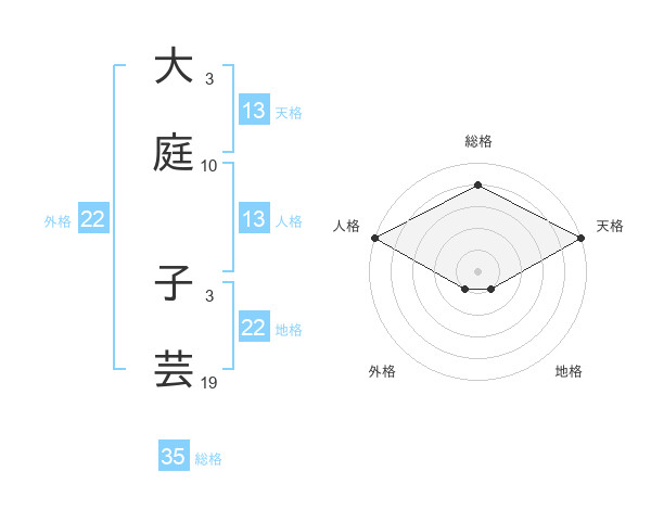 大庭 子芸さんを姓名の画数から五運を鑑定