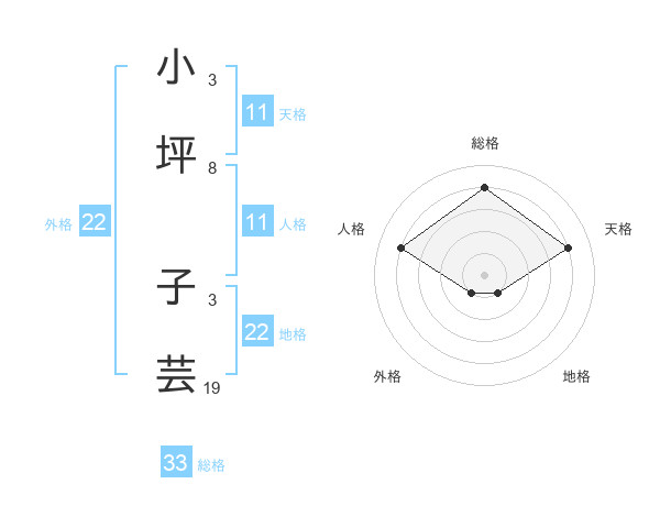 小坪 子芸さんを姓名の画数から五運を鑑定