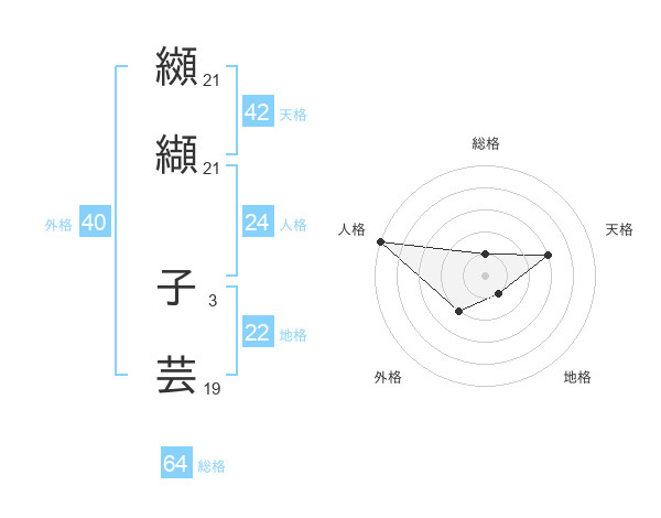 纐纈 子芸さんの総格は64画の1点!