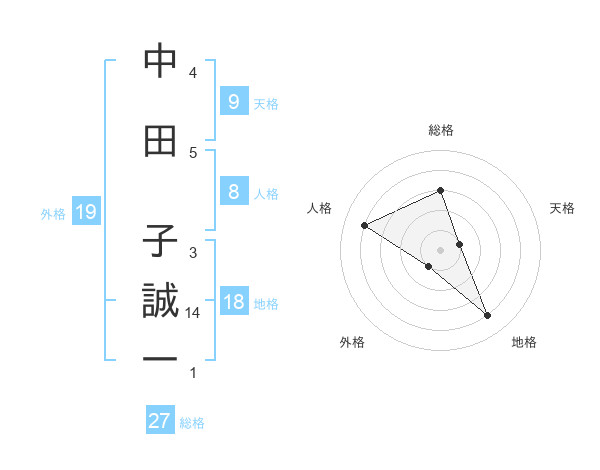 中田 子誠一さんを姓名の画数から五運を鑑定