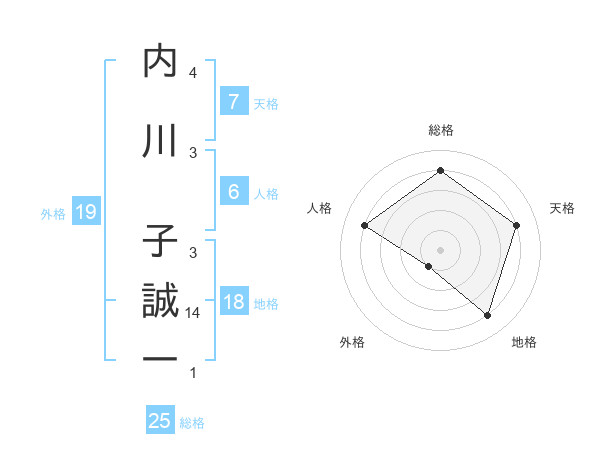 内川 子誠一さんの天格は7画の4点!