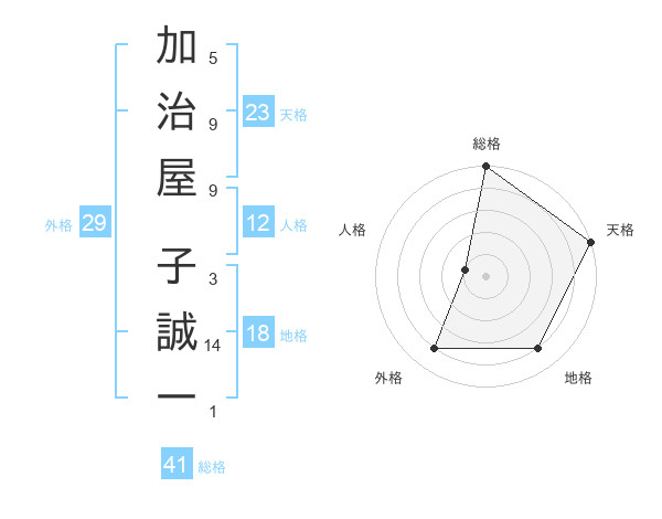 加治屋 子誠一さんを姓名の画数から五運を鑑定