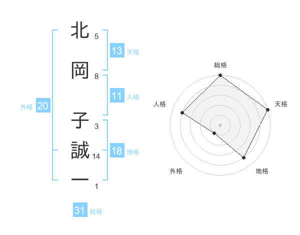 北岡 子誠一さんを姓名の画数から五運を鑑定