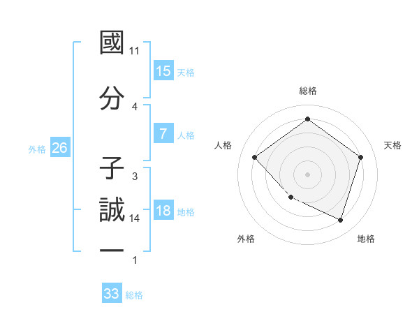 國分 子誠一さんを姓名の画数から五運を鑑定