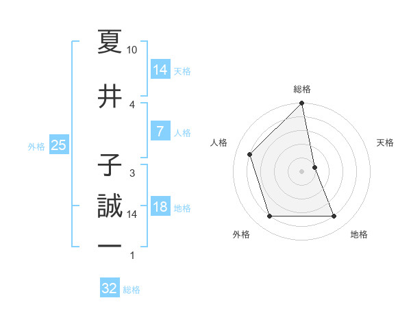 夏井 子誠一さんを姓名の画数から五運を鑑定