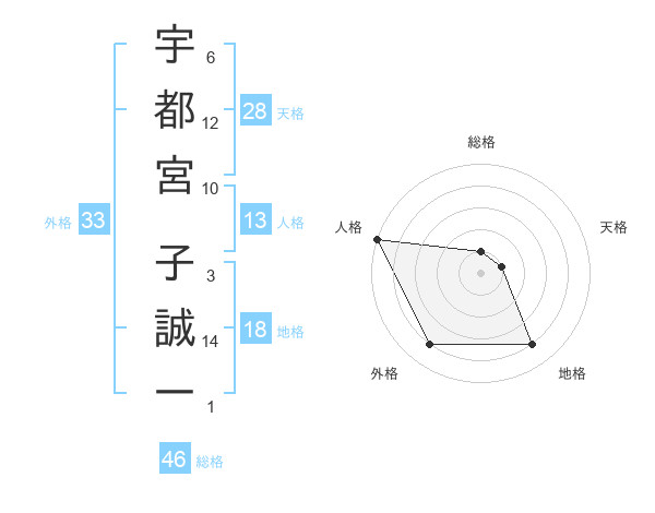 宇都宮 子誠一さんを姓名の画数から五運を鑑定