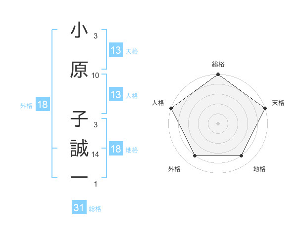 小原 子誠一さんを姓名の画数から五運を鑑定