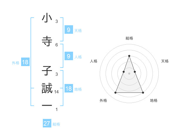 小寺 子誠一さんの総格は27画の3点!