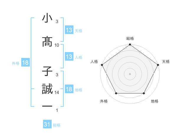小髙 子誠一さんの総格は31画の5点!
