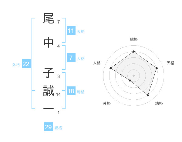 尾中 子誠一さんの総格は29画の4点!