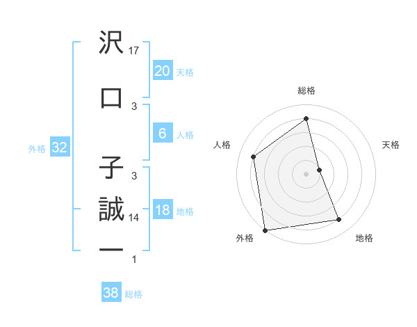 沢口 子誠一さんを姓名の画数から五運を鑑定