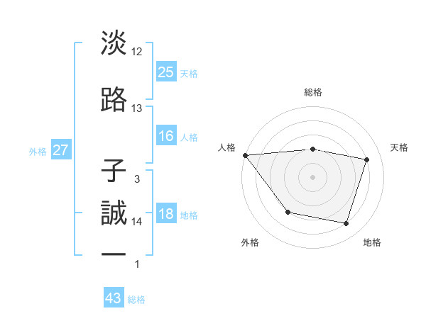 淡路 子誠一さんを姓名の画数から五運を鑑定