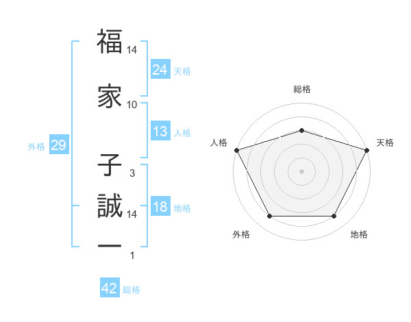 福家 子誠一さんを姓名の画数から五運を鑑定