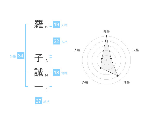 羅 子誠一さんの総格は37画の5点!