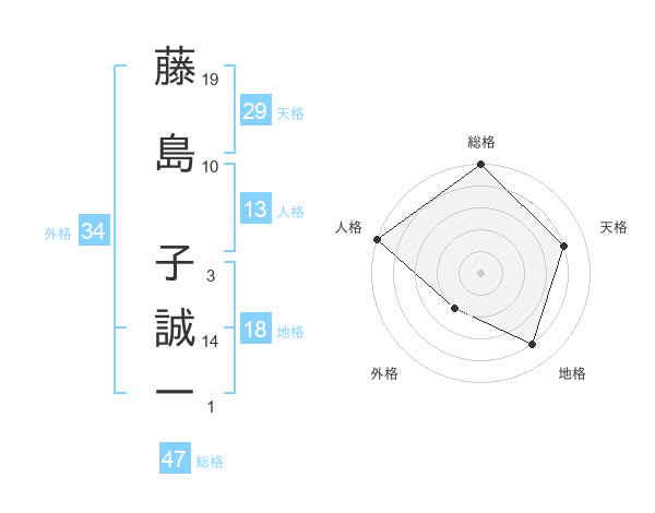 藤島 子誠一さんの総格は47画の5点!